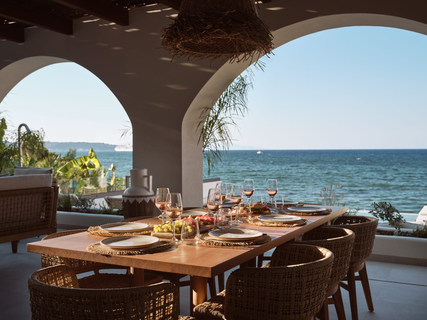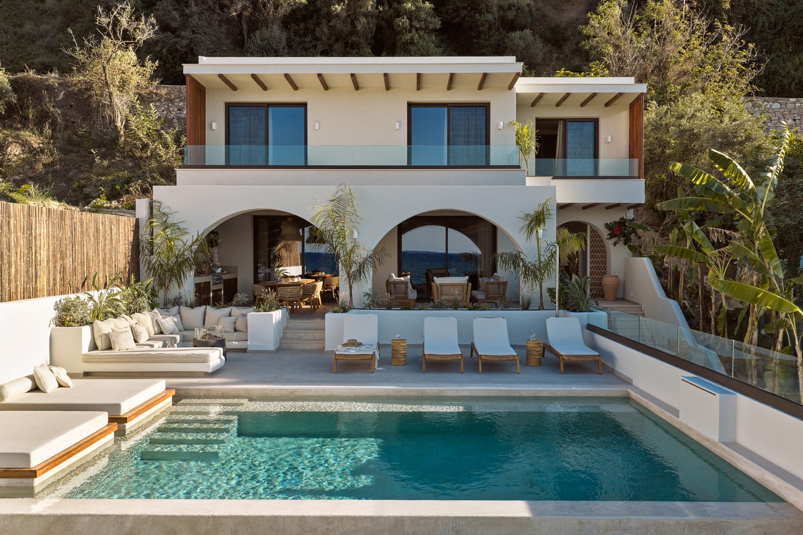 Discover the beauty of Oriana Beachfront Villa through our photo gallery. Perched above the shimmering Ionian Sea, this luxury retreat in Argasi, Zakynthos offers breathtaking views, elegant interiors, and total tranquility.